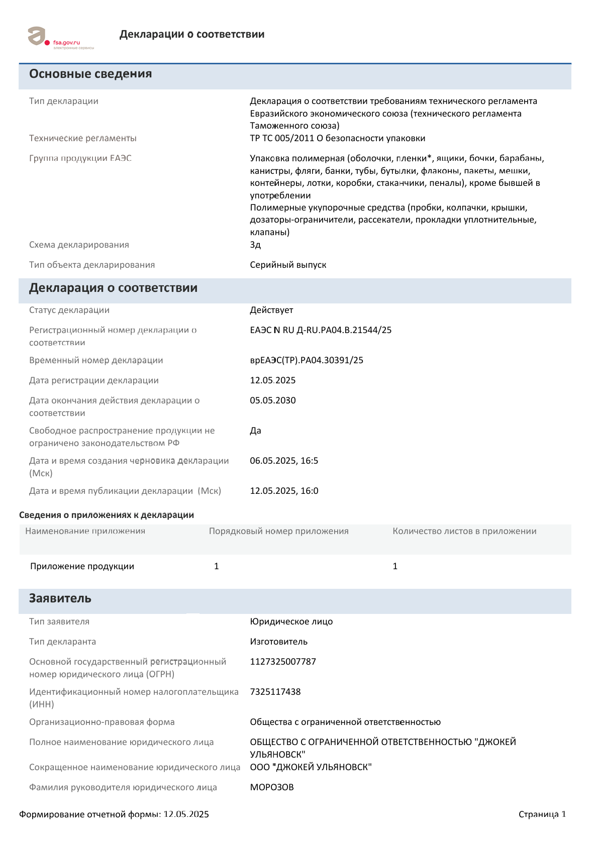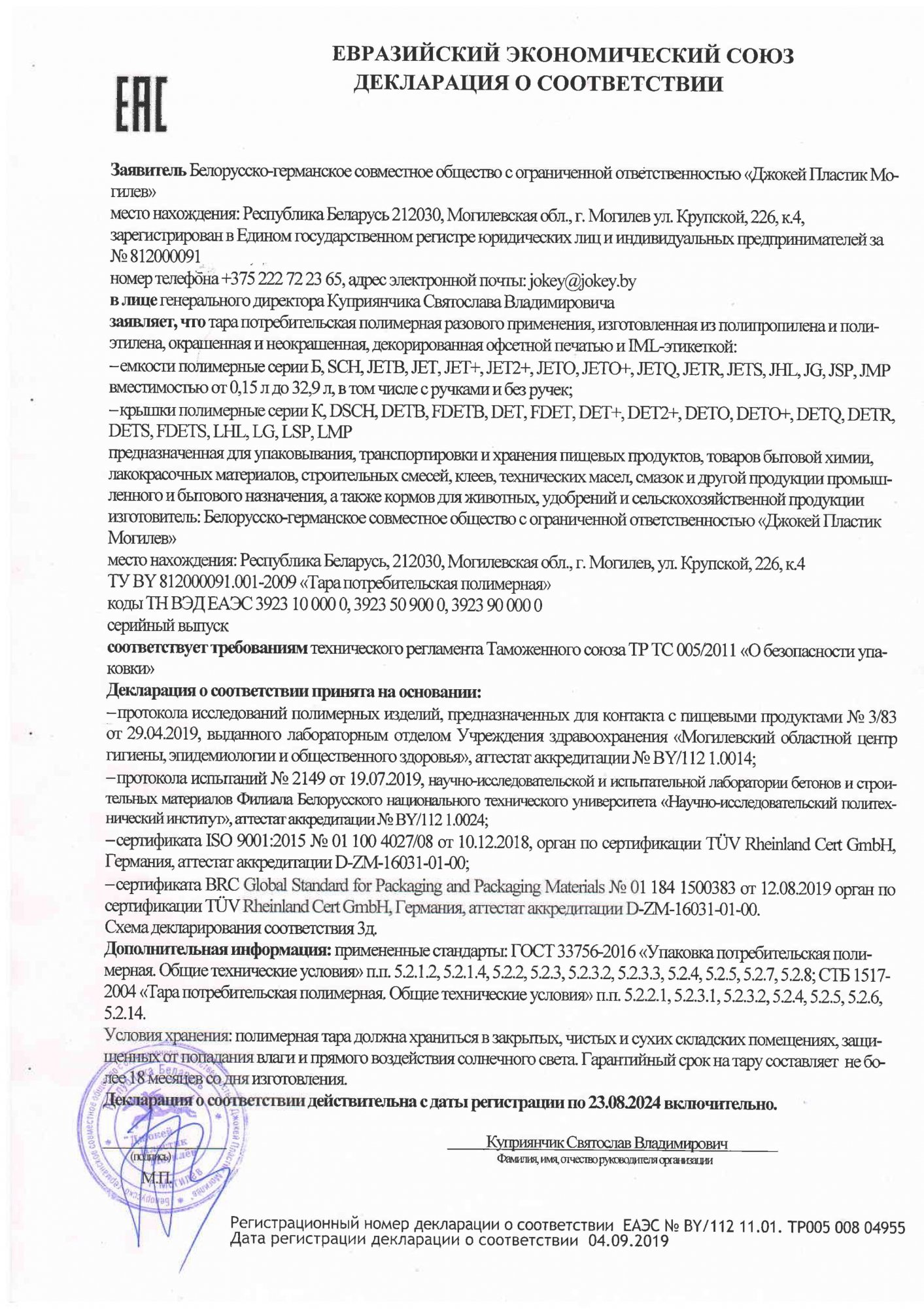 Сертификат соответствия на ленты ПЭТ и ПП 2025